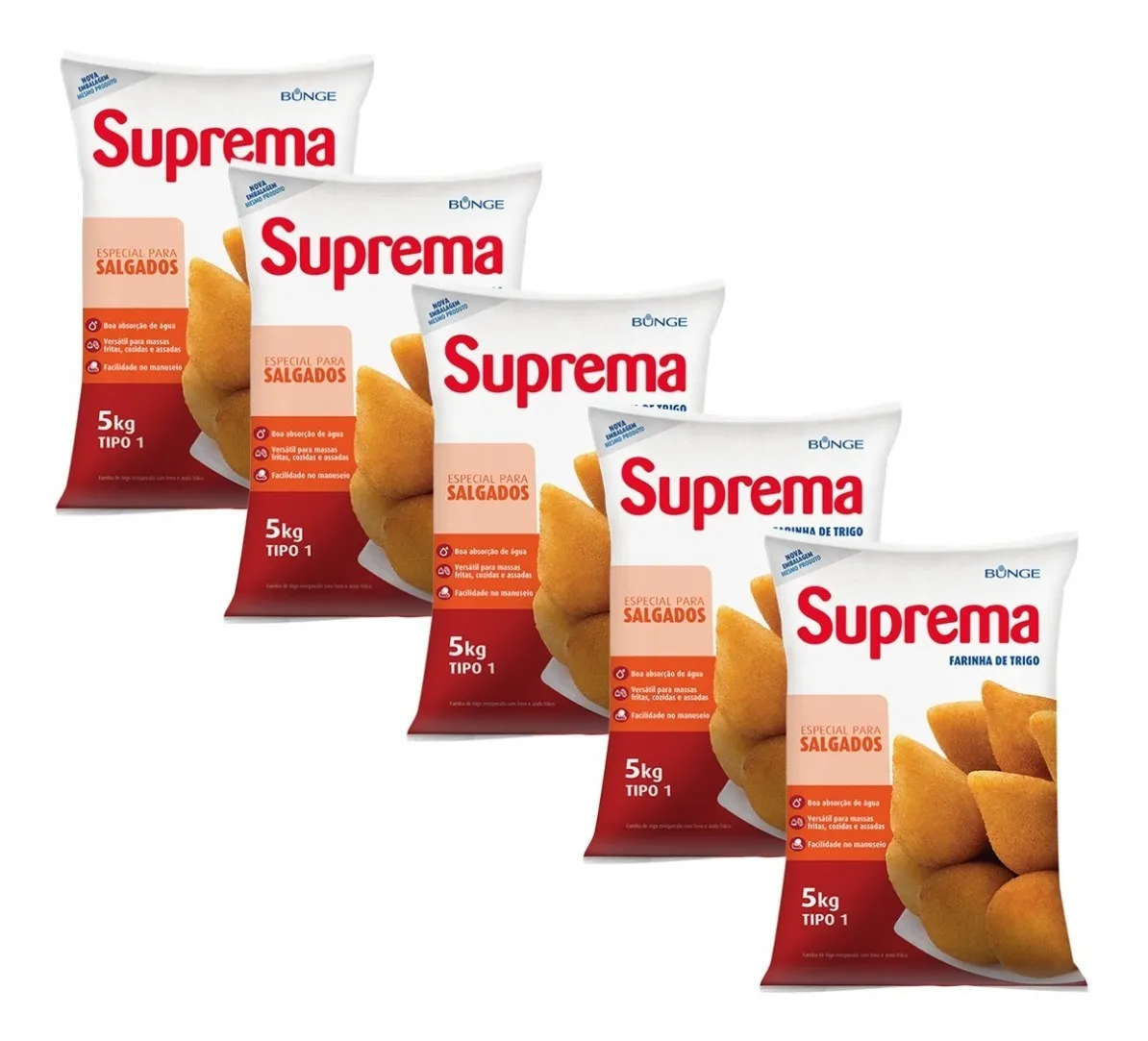 Farinha De Trigo Suprema Para Salgados 25kg Fardo C 5 Unid